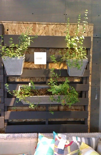 My pots are from Target and have holes on the back and perch from nails in the slats. The pots from CB2 have a wire hanging arrangement, which allows for even more versatility. The galvanized steel also looks better than the plastic ones I used, I think, so I'll keep my eyes open for something similar.